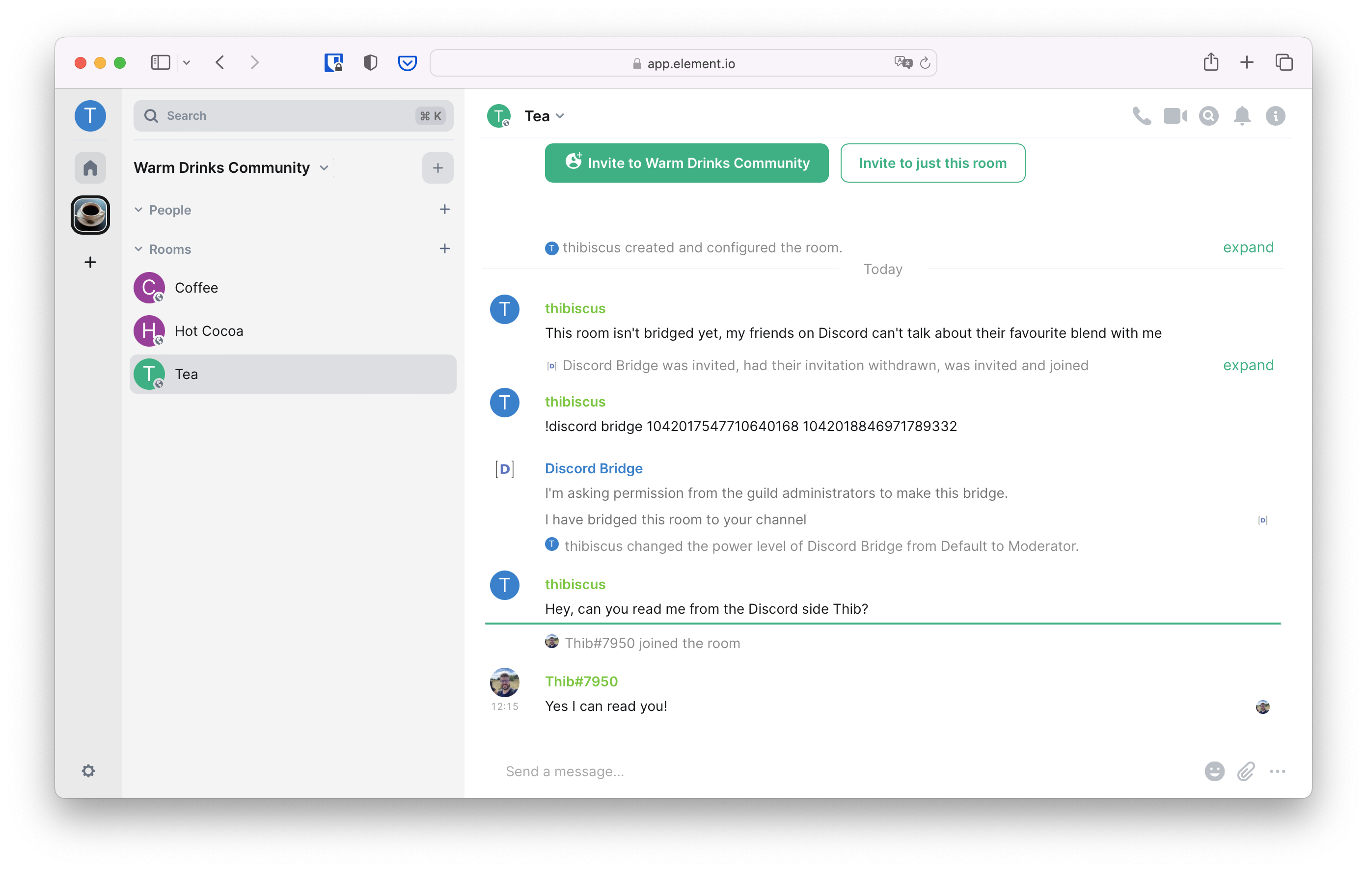 You can then add a couple of rooms to get started with the basics... and voilĂ , you now have a community on Matrix!